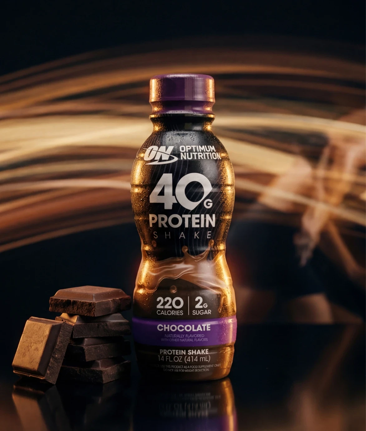 Optimum Nutrition entered the high-protein ready-to-drink category with a new 40g Protein Shake. While the brand has deep equity in performance nutrition, the product required a distinct expression that could extend that equity into a ready-to-drink format designed for active, in-motion routines beyond the gym.