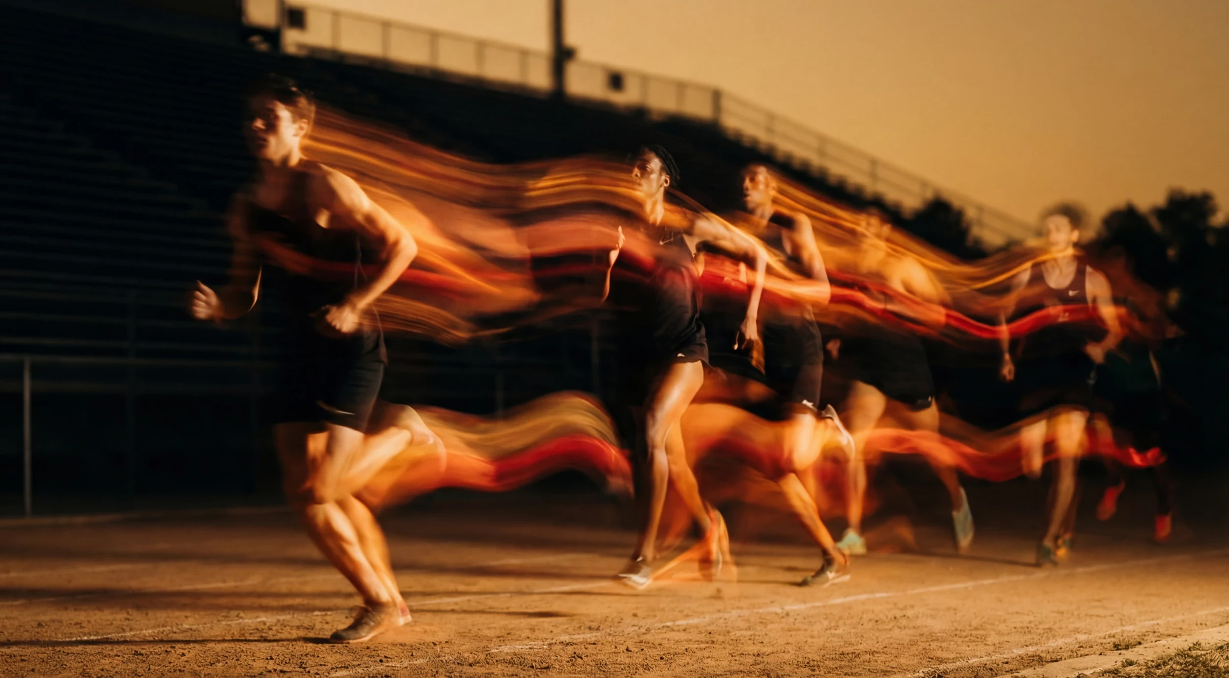 The visual world was shaped around moments where performance is already in progress, spanning peak effort, recovery, and the transitions between them. By focusing on how these states flow into one another, the work frames performance as something continuous rather than episodic.